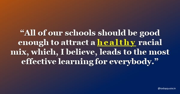 “All of our schools should be good enough to attract a healthy racial mix, which, I believe, leads to the most effective learning for everybody.”