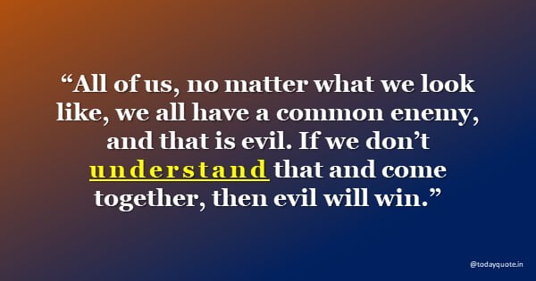 “All of us, no matter what we look like, we all have a common enemy, and that is evil. If we don’t understand that and come together, then evil will win.”